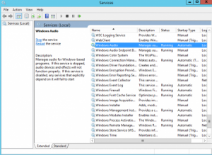 باید Windows Audio را در هر دو دستگاه در services.msc فعال کنید و باید در حالت “در حال اجرا” باشند.