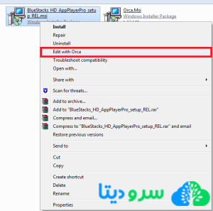 در این مرحله پس از نصب نرمافزار Orca، روی فایل نصبی نرمافزار بلواستکس راست کلیک نموده و گزینه Edit with Orca کلیک نمایید.