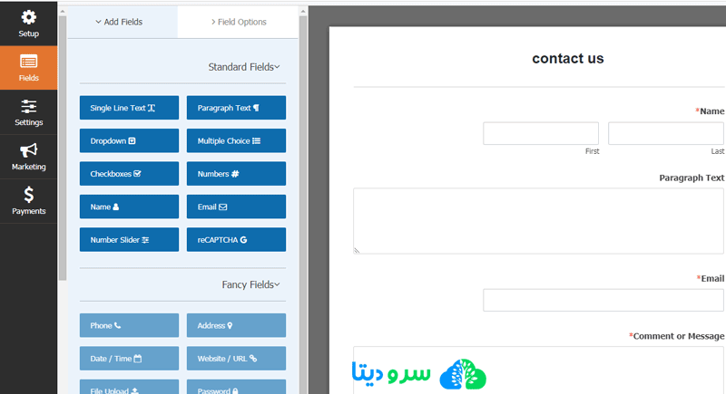 اگر می خواهید یک فیلد جدید اضافه کنید ، به سادگی از قسمت های موجود در نوار کناری سمت چپ استفاده کنید.